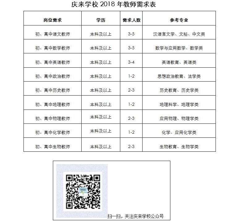 五、附件《慶來(lái)學(xué)校2018年教師需求表》