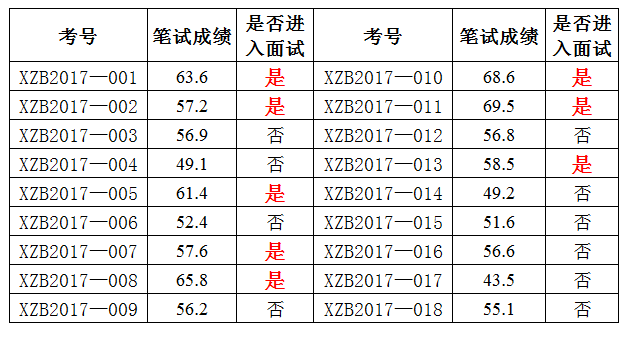 根據(jù)《中共宣威市委辦公室宣威市人民政府辦公室關(guān)于印發(fā)宣威市市直機(jī)關(guān)公開遴選公務(wù)員實(shí)施辦法(試行)的通知》(宣辦發(fā)〔2017〕114號(hào))規(guī)定,按照《宣威市人民政府辦公室2017年公開遴選公務(wù)員公告》的時(shí)序安排,本次公開遴選工作已完成筆試,現(xiàn)將筆試成績(jī)公告如下: