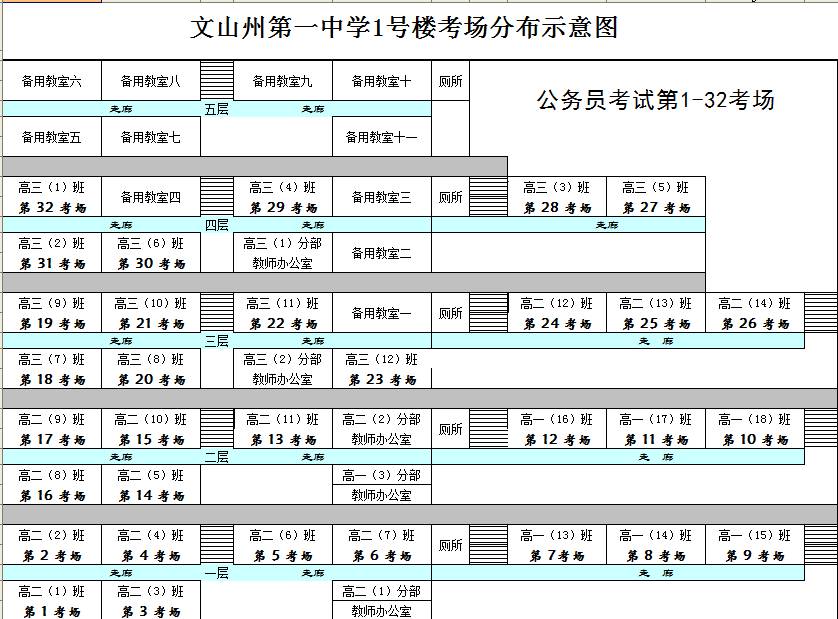 文山州2014年公務(wù)員筆試考場示意圖 州一中