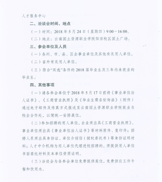 云南省2018屆高職高專畢業(yè)生雙向選擇洽談會 云南國土資源職業(yè)學院專場雙選會通知