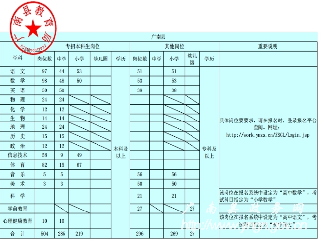 根據(jù)《云南省教育廳關于做好2018年度中央特崗計劃招聘考試工作的通知》(云教人〔2018〕68號)、《云南省教育廳關于下達2018年度中央特崗計劃招聘指標的通知》(云教人〔2018〕 53號)精神,現(xiàn)將廣南縣2018年特崗教師招聘工作有關事項公告如下: