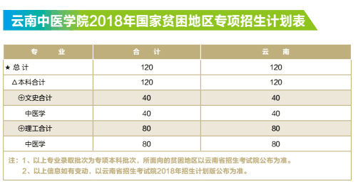 云南中醫(yī)學(xué)院2018年國家貧困地區(qū)專項招生計劃表