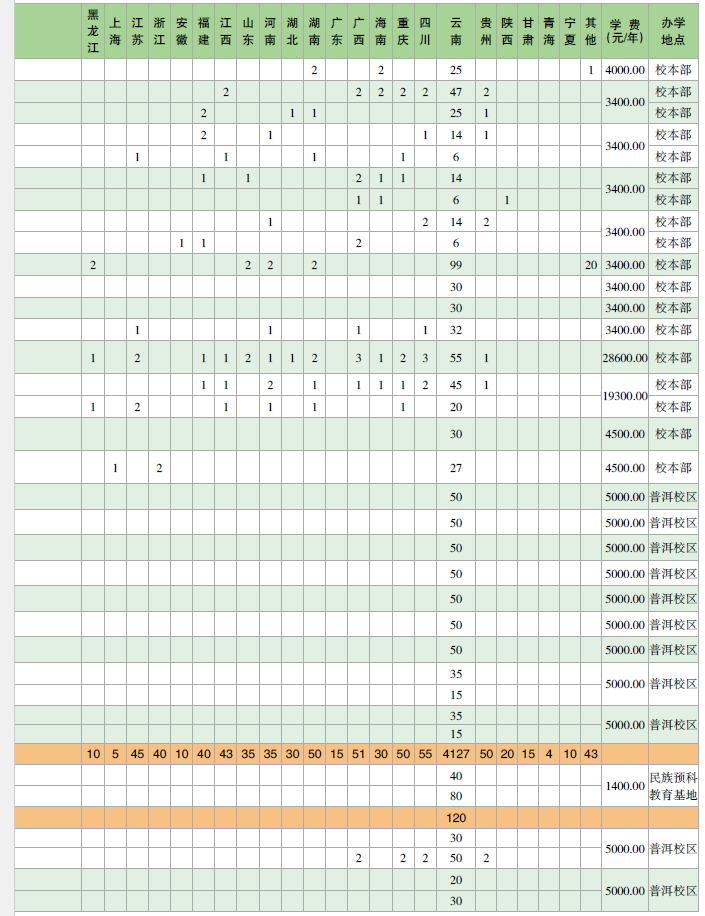 云南農(nóng)業(yè)大學(xué)2018年分省分專業(yè)招生計(jì)劃表