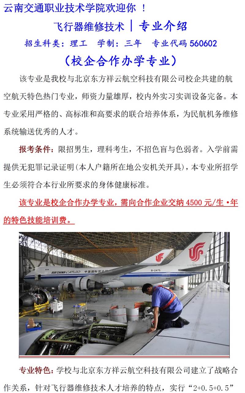 云南交通職業(yè)技術(shù)學(xué)院2018年招生專業(yè)介紹(飛行器維修技術(shù)專業(yè))