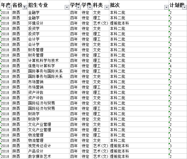 云南財經大學2018年本科分省招生計劃表(陜西)