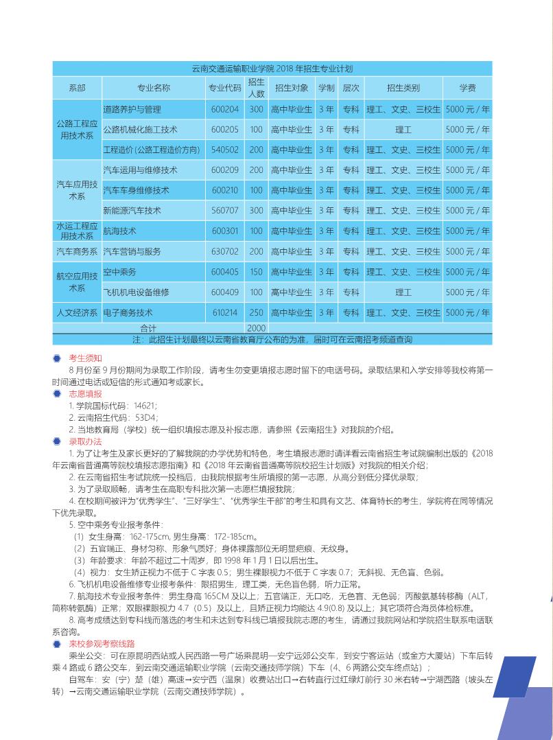 云南交通運(yùn)輸職業(yè)學(xué)院2018年招生章程