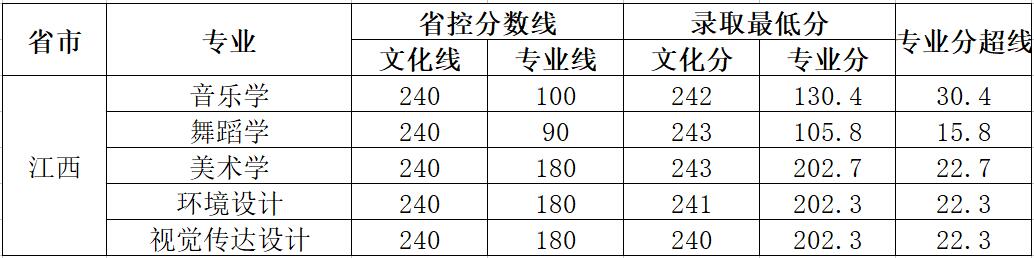 云南師范大學商學院2015-2017年藝術類分省錄取最低分(江西)