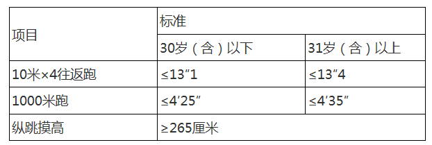 體能測試時間及地點另行通知,體能測試的合格標準附后。