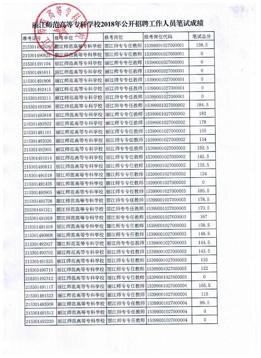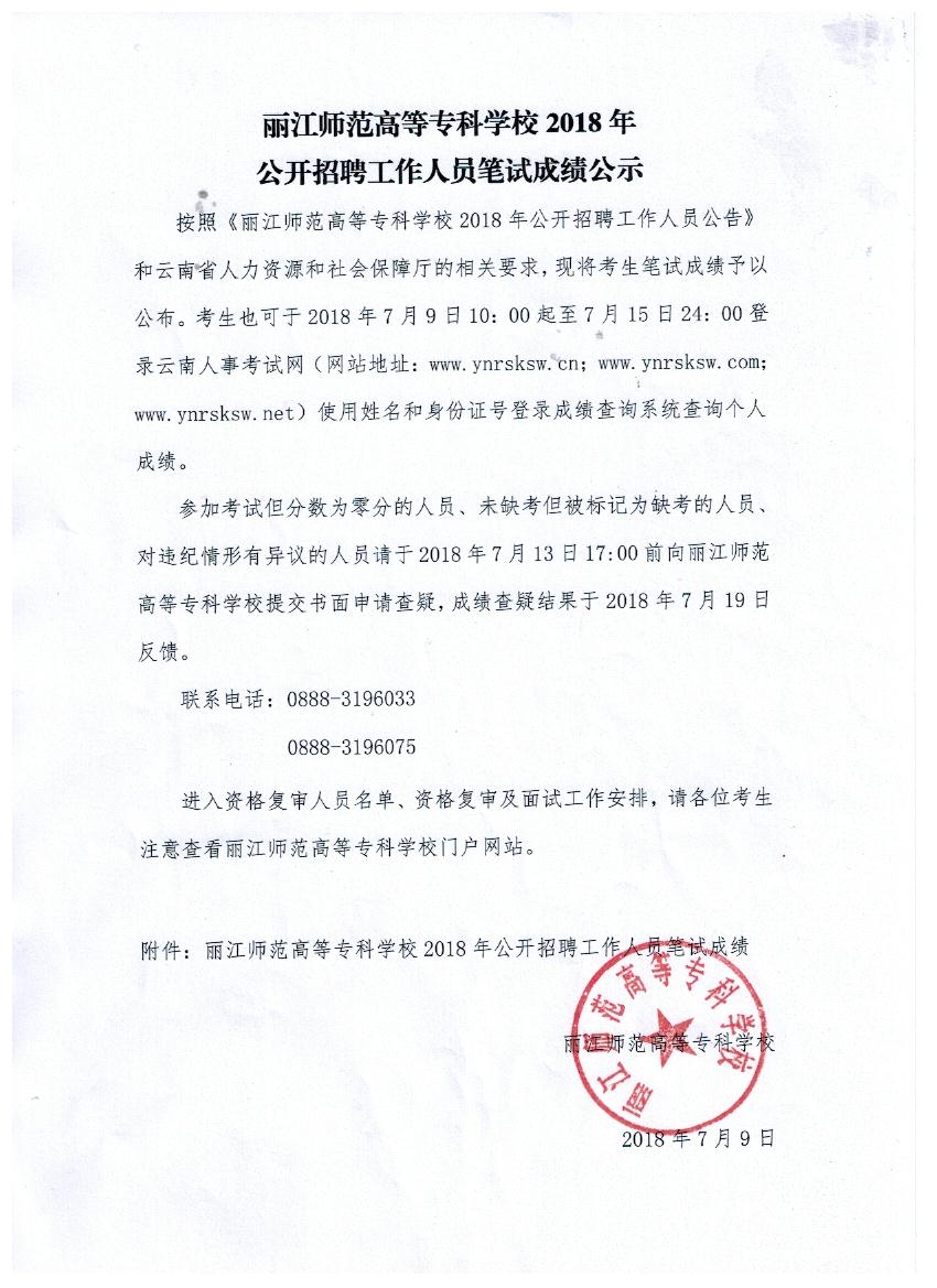 附件:麗江師范高等專科學(xué)校2018年公開招聘工作人員筆試成績(jī)
