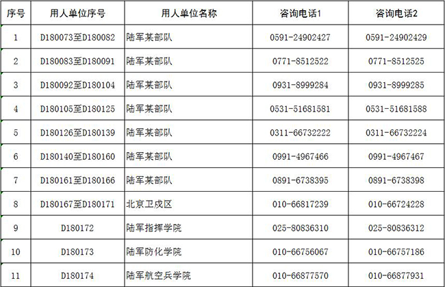 聯(lián)勤保障部隊咨詢電話:027-59561376;電子郵箱:lqbzbd@81.cn