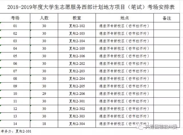 德宏州2018年大學(xué)生志愿服務(wù)西部計(jì)劃省級(jí)地方項(xiàng)目(筆試)考場(chǎng)安排公告