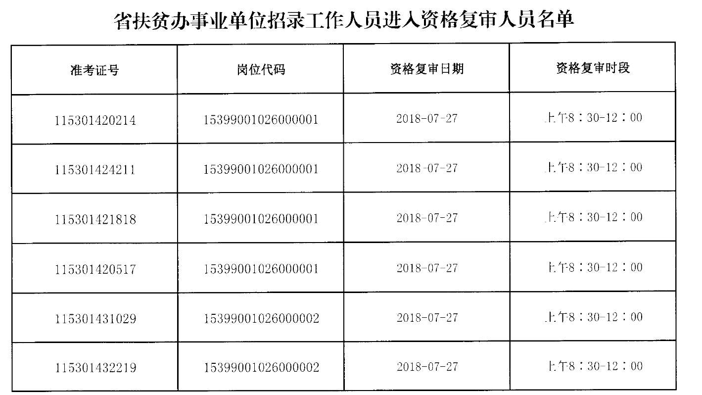 附件:省扶貧辦事業(yè)單位招錄工作人員進(jìn)入資格復(fù)審人員名單