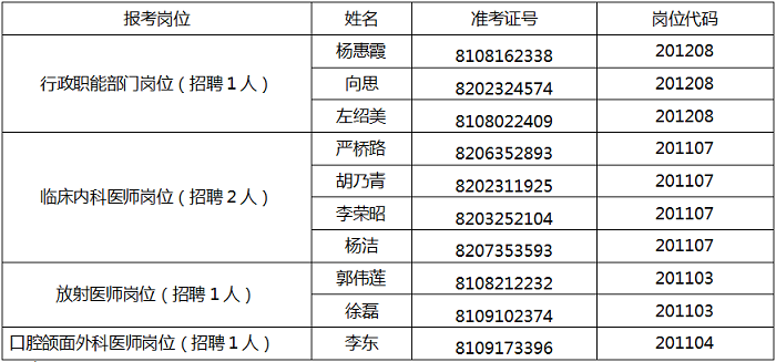 備注:根據(jù)《2018年云南省衛(wèi)生和計(jì)劃生育委員會所屬事業(yè)單位面向社會公開招聘工作人員公告》有關(guān)規(guī)定,我院招聘的口腔頜面外科醫(yī)師崗位(201104)招聘人數(shù)與進(jìn)入面試人數(shù)未達(dá)1:2比例。經(jīng)省人力資源和社會保障廳批準(zhǔn),同意按1:1的比例進(jìn)行面試,面試合格分?jǐn)?shù)線為70分,參加面試人員面試分?jǐn)?shù)低于70分的不予聘用。