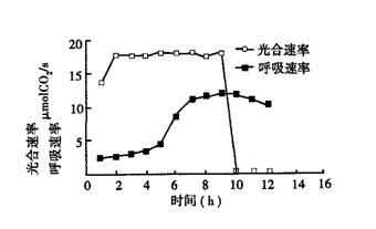 1.在充滿N2與CO2的密閉容器中,用水培法栽培幾株番茄,CO2充足。測得系統(tǒng)的呼吸速率和光合速率變化曲線如下圖,請回答問題。
