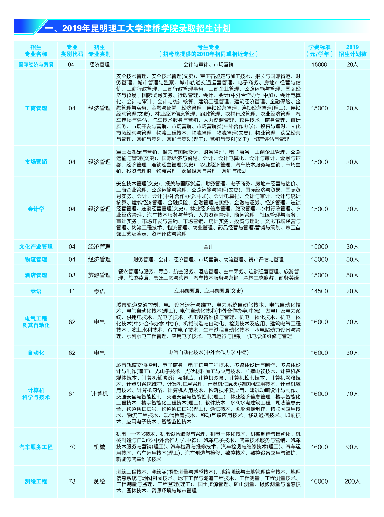 昆明理工大學津橋?qū)W院2019年專升本招生簡章