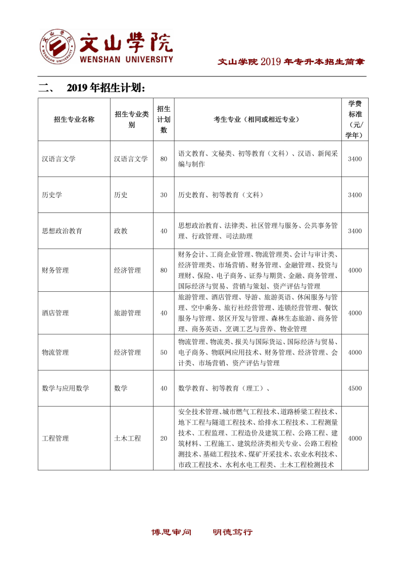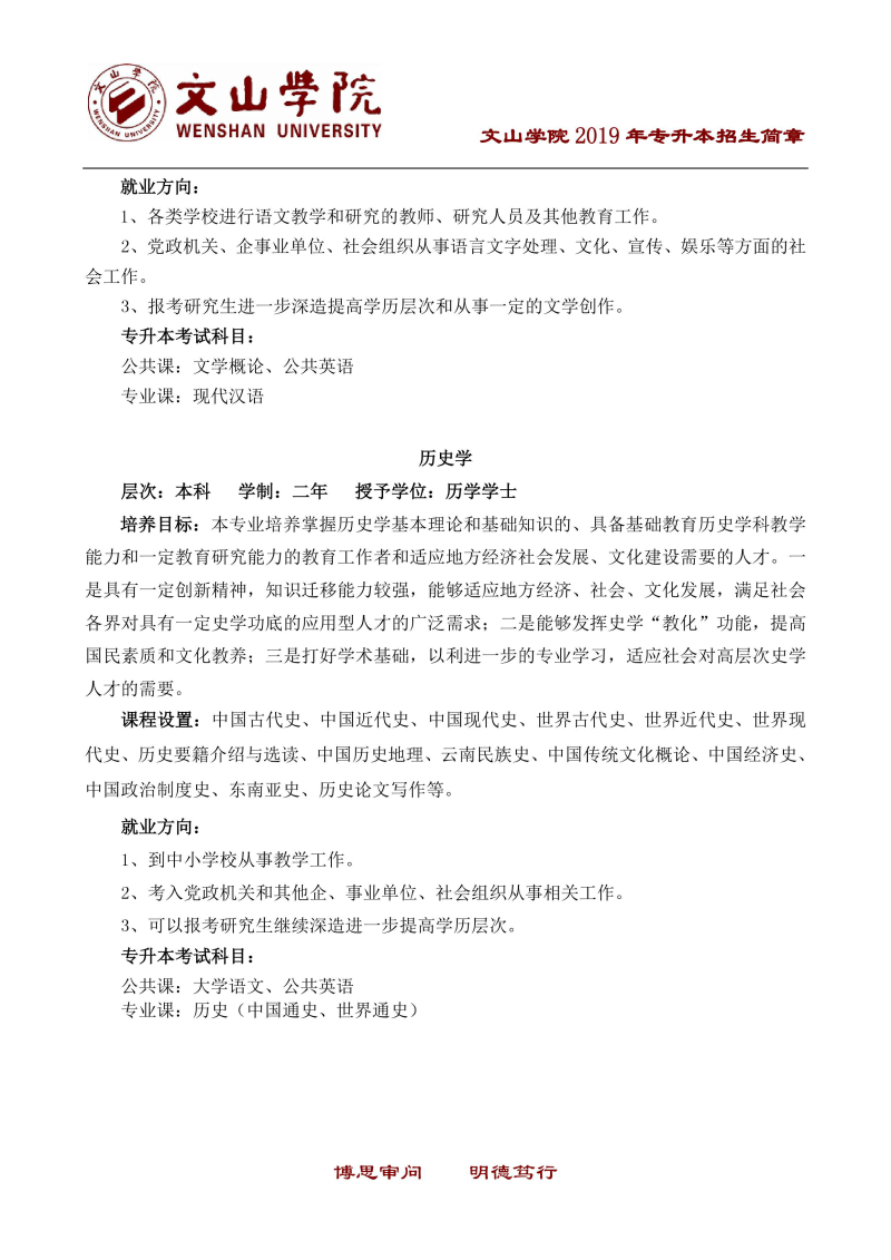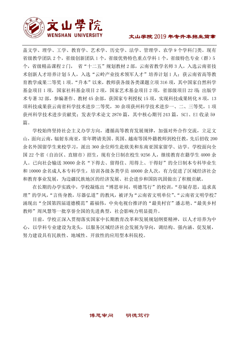 文山學(xué)院2019年專升本招生簡(jiǎn)章