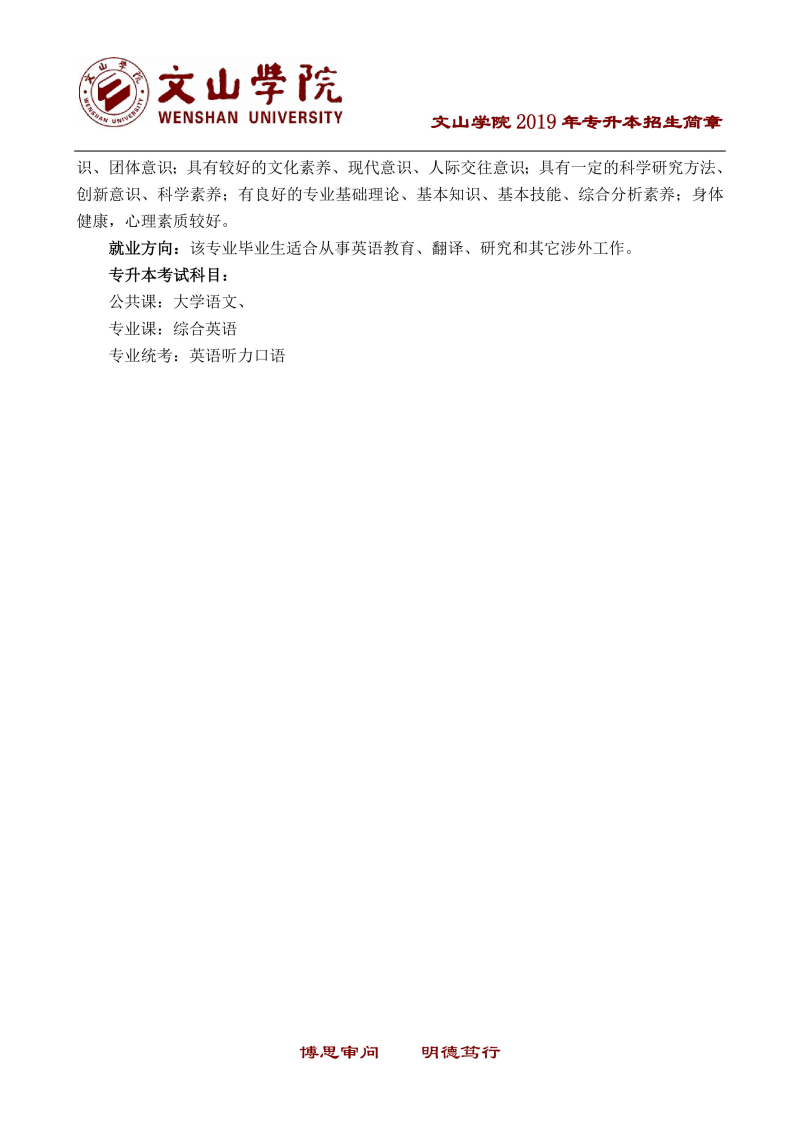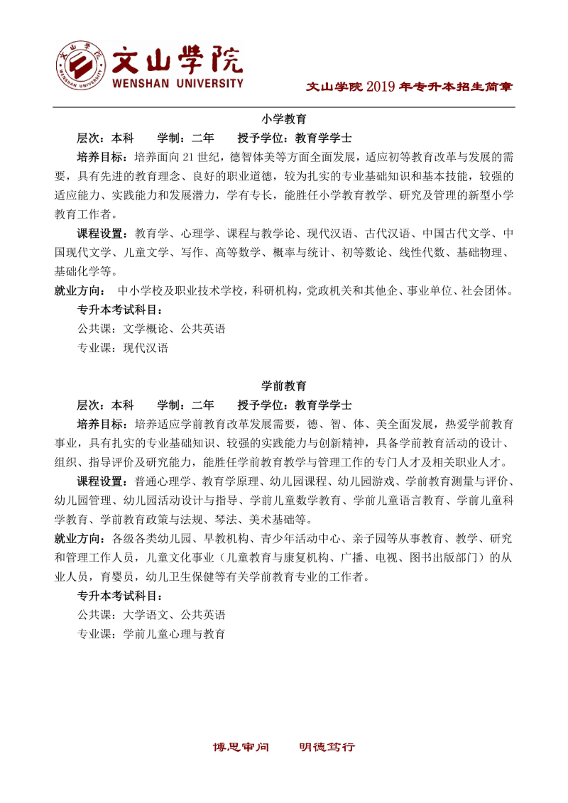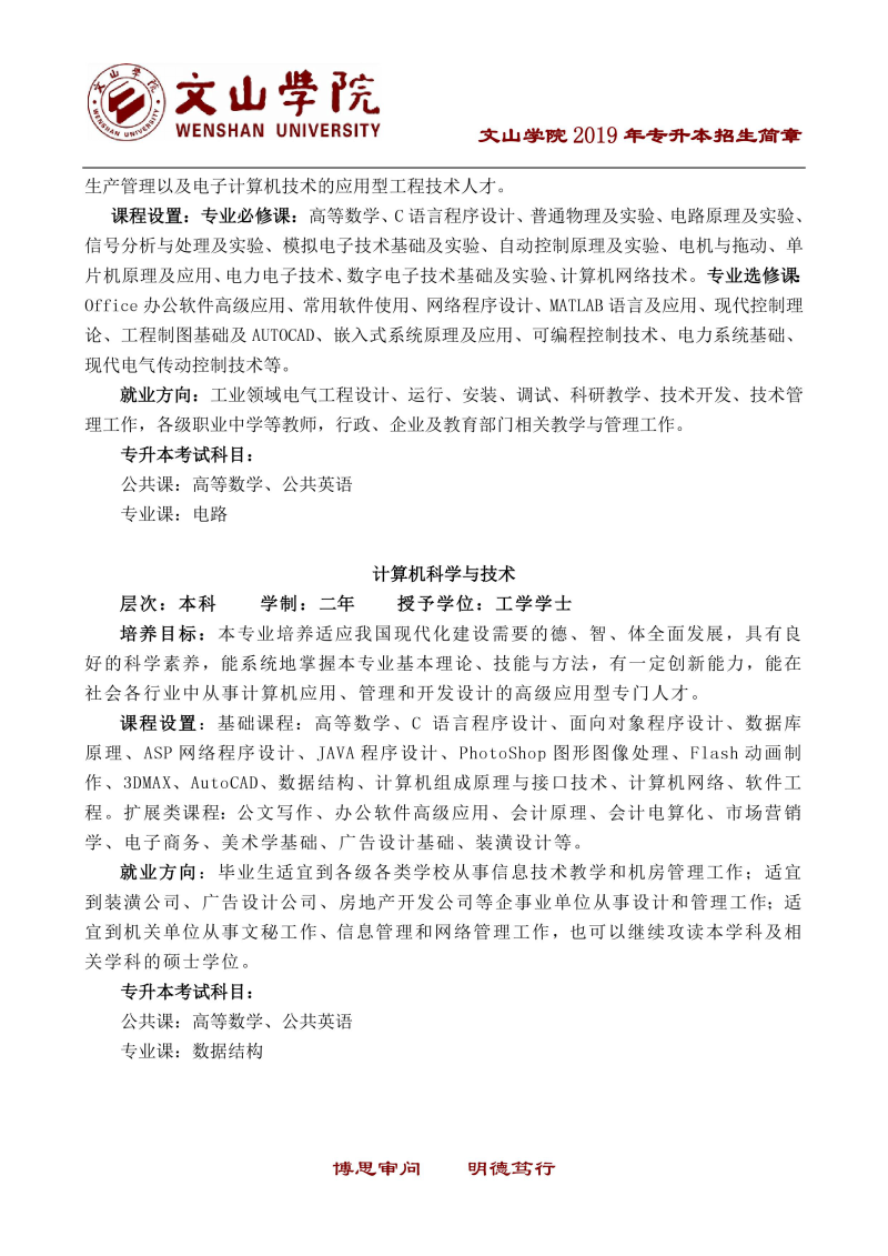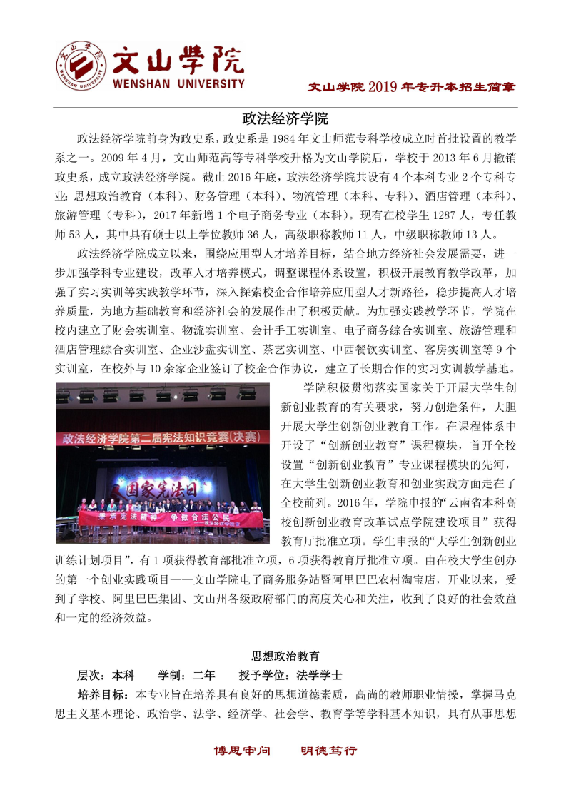 文山學(xué)院2019年專升本招生簡(jiǎn)章