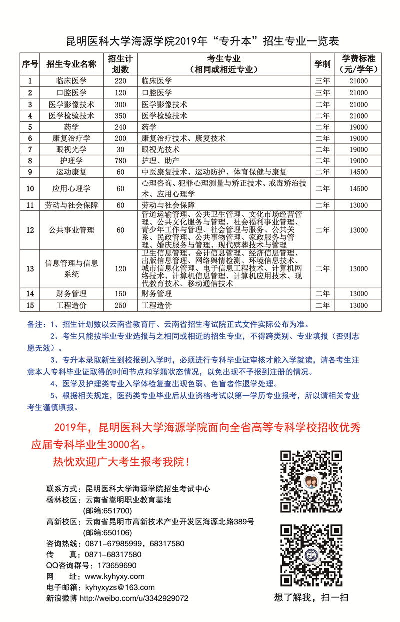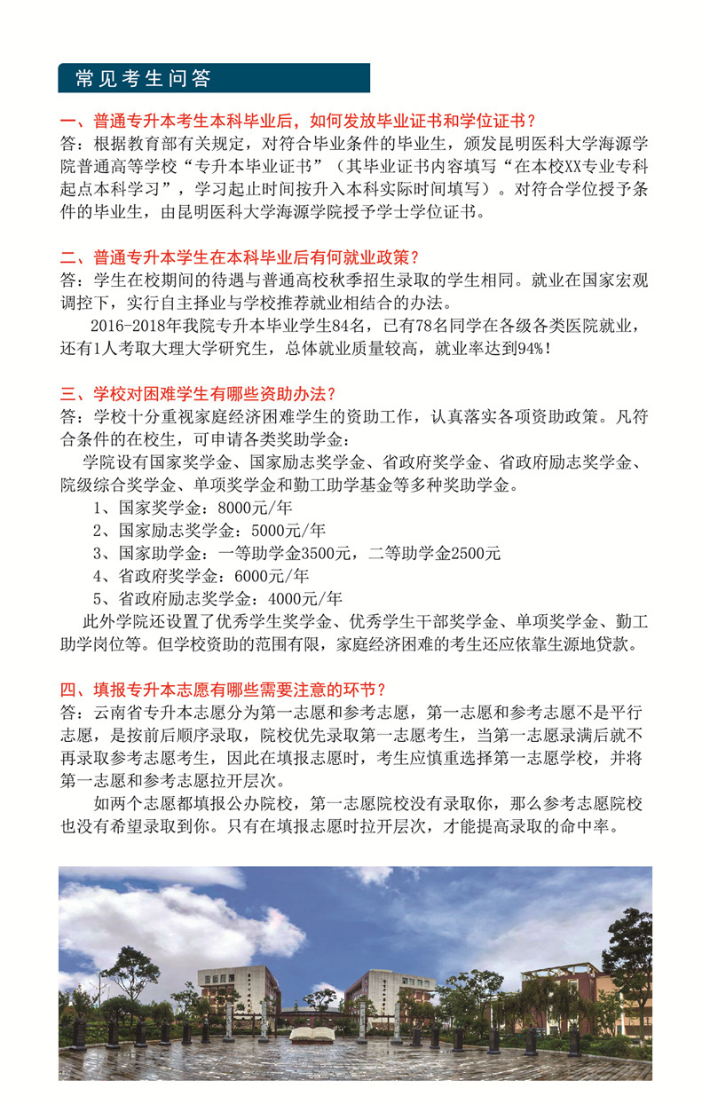 昆明醫(yī)科大學(xué)海源學(xué)院2019年專升本招生簡章