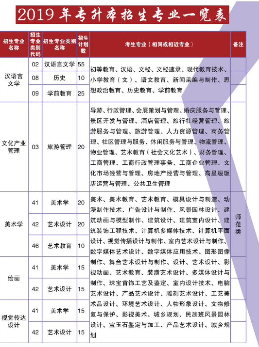 云南藝術(shù)學(xué)院文華學(xué)院2019年專升本招生專業(yè)