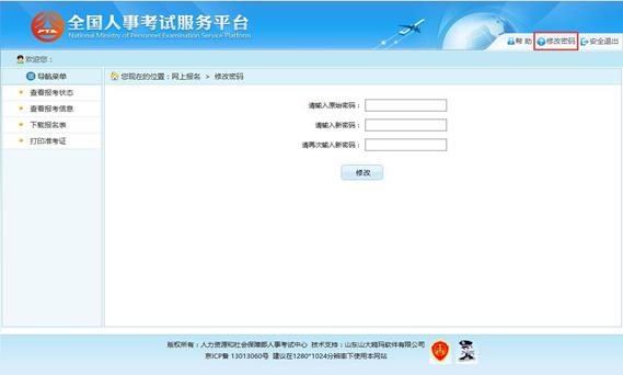 在該界面可以對(duì)考生的登錄密碼進(jìn)行修改。