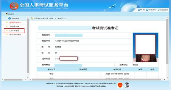 通過(guò)點(diǎn)擊系統(tǒng)導(dǎo)航菜單的“打印準(zhǔn)考證”選項(xiàng),可進(jìn)入準(zhǔn)考證打印頁(yè)面,如下圖所 示: