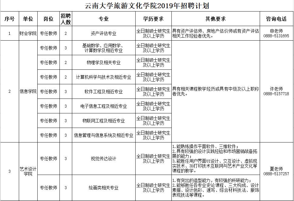 附件:云南大學(xué)旅游文化學(xué)院2019年招聘計(jì)劃