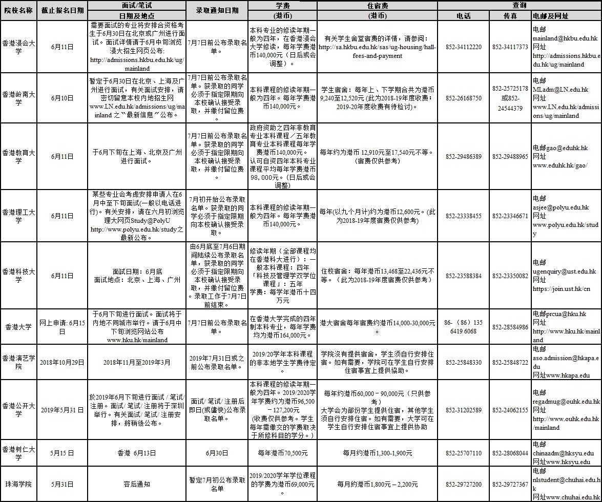 2019年香港院校內地招生報名資訊