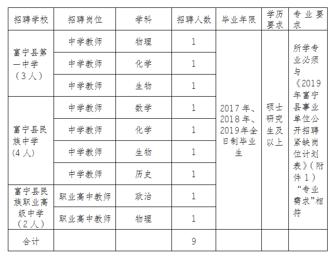 富寧縣2019年高中緊缺崗位教師公開招聘公告