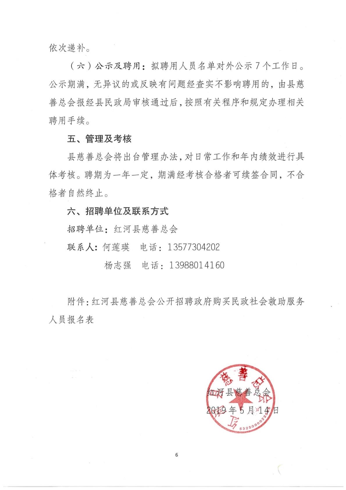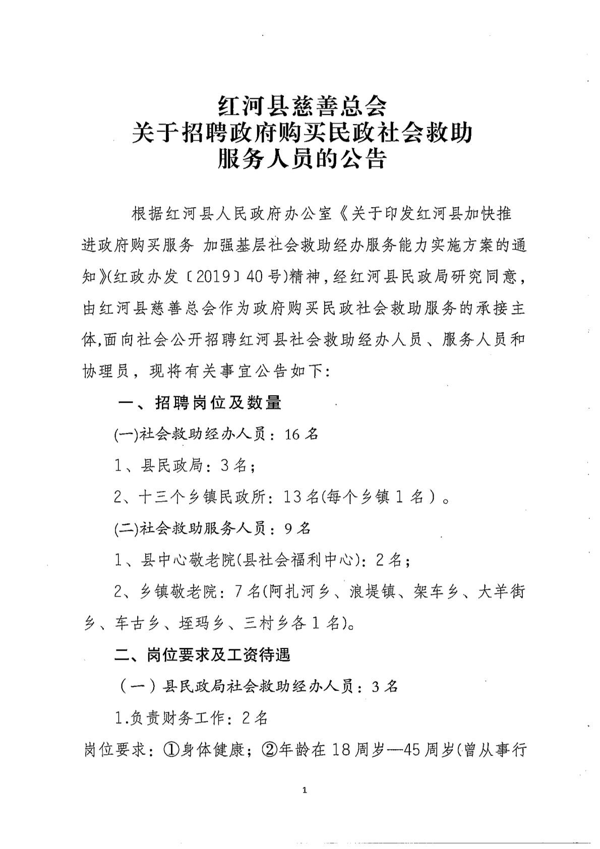 紅河縣慈善總會(huì)關(guān)于招聘政府購買民政社會(huì)救助服務(wù)人員的公告