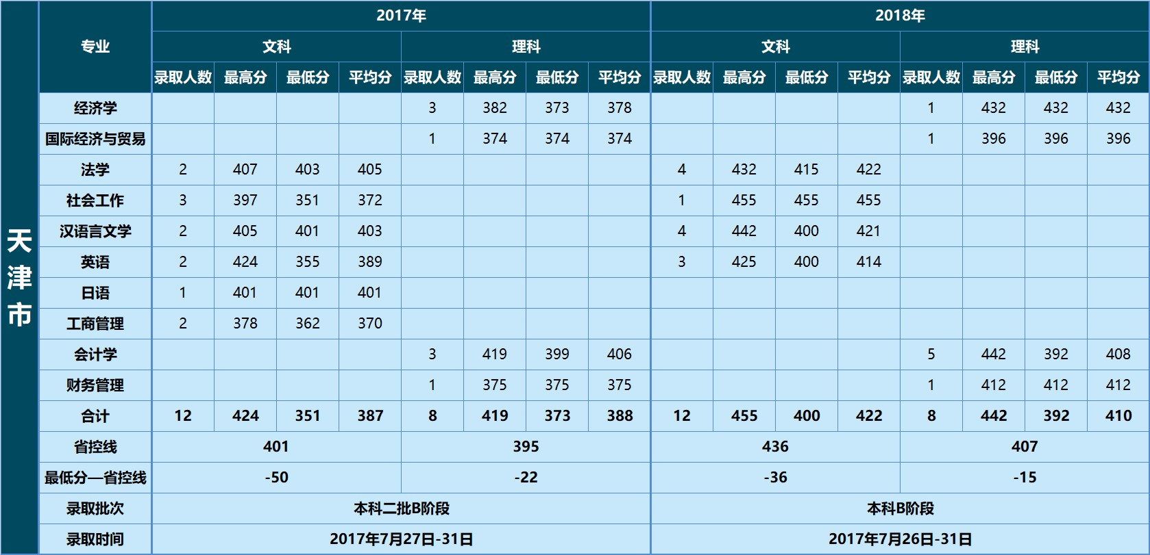 云南大學(xué)滇池學(xué)院2017、2018年錄取情況(天津市)
