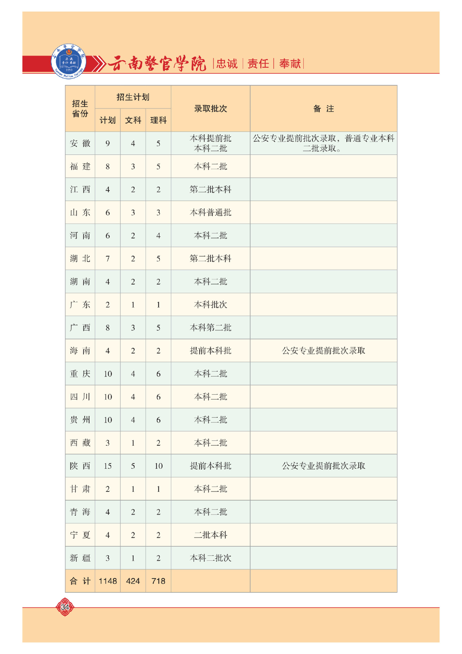 云南警官學(xué)院2019年公安專(zhuān)業(yè)省內(nèi)招生計(jì)劃一覽表