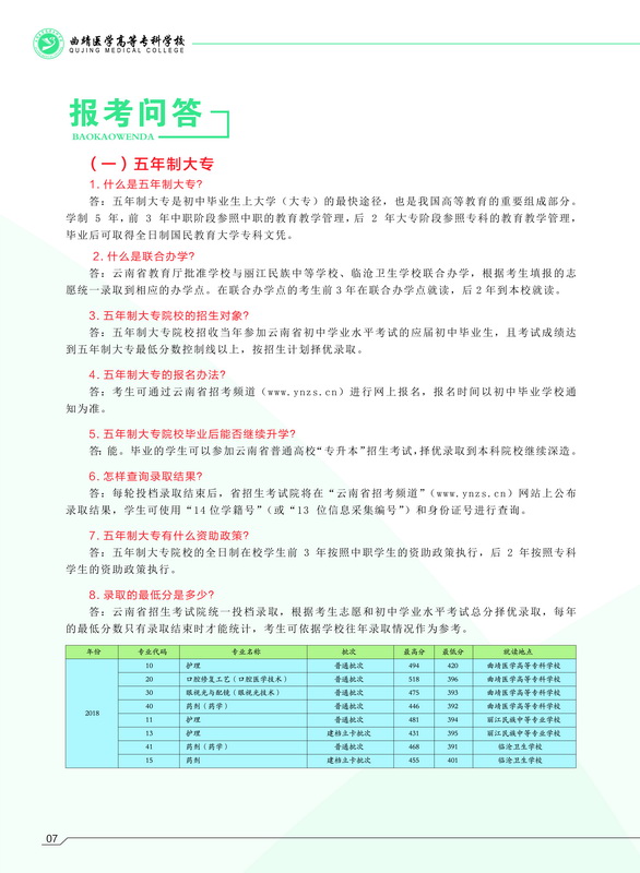 2019曲靖醫(yī)學(xué)高等專科學(xué)校招生簡章