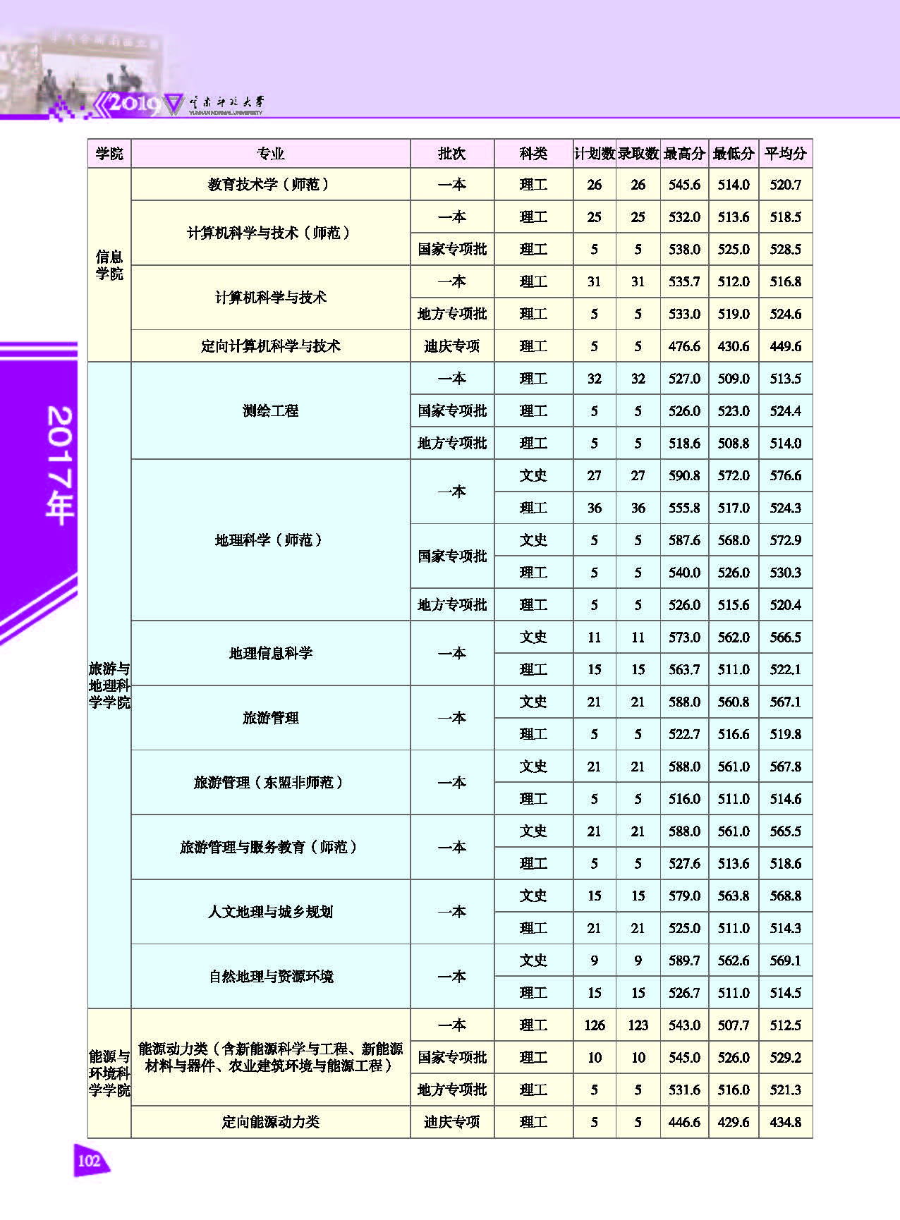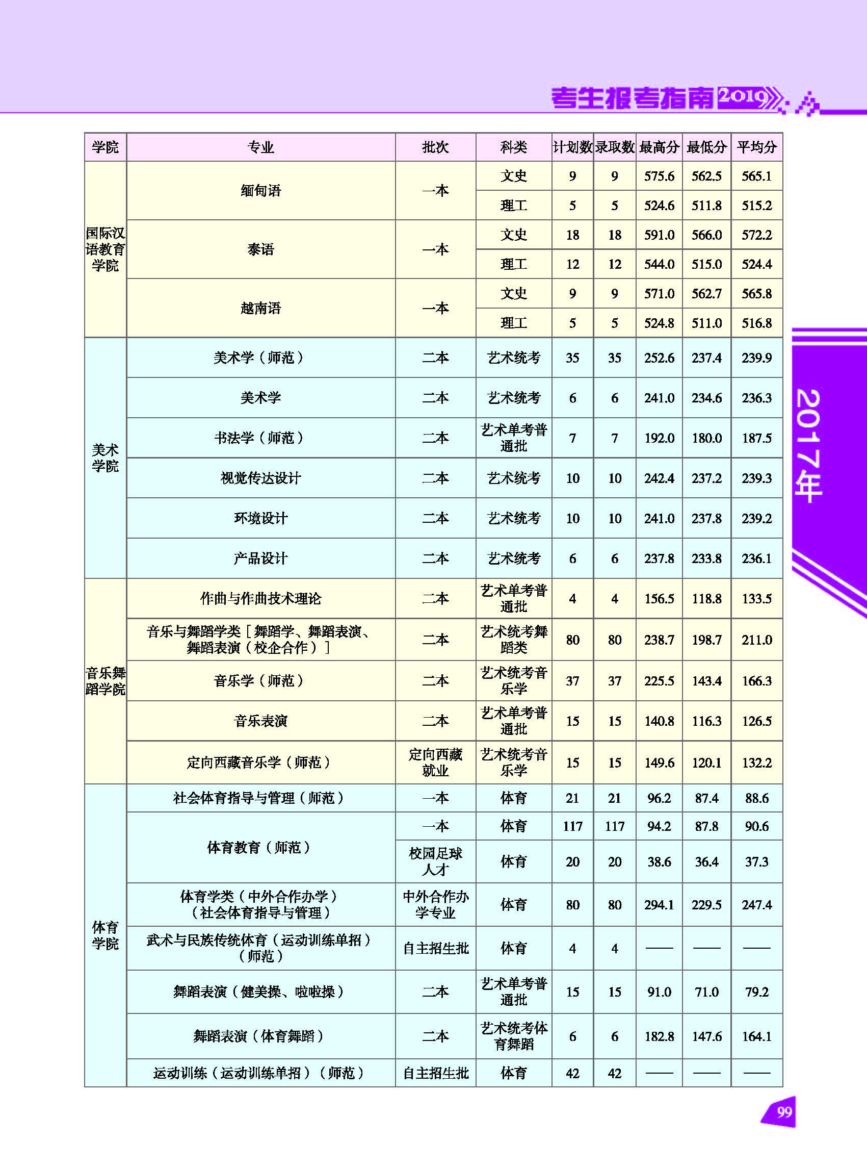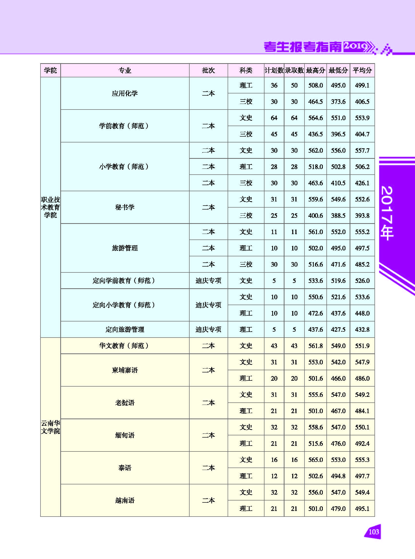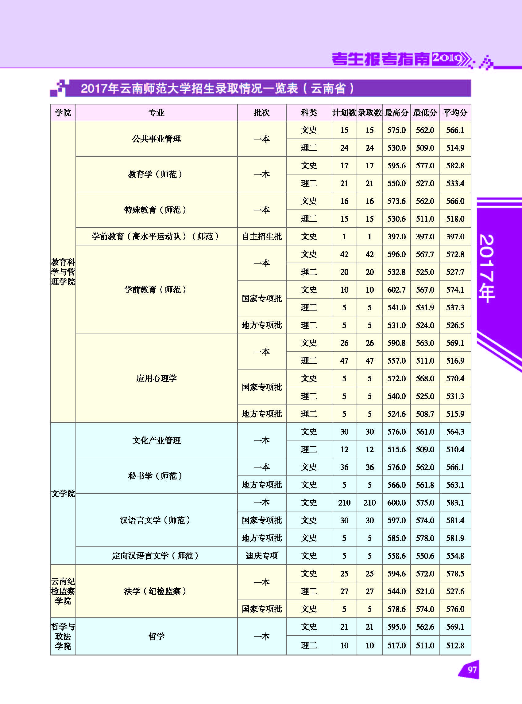 2017年云南師范大學(xué)招生錄取情況一覽表(云南省)