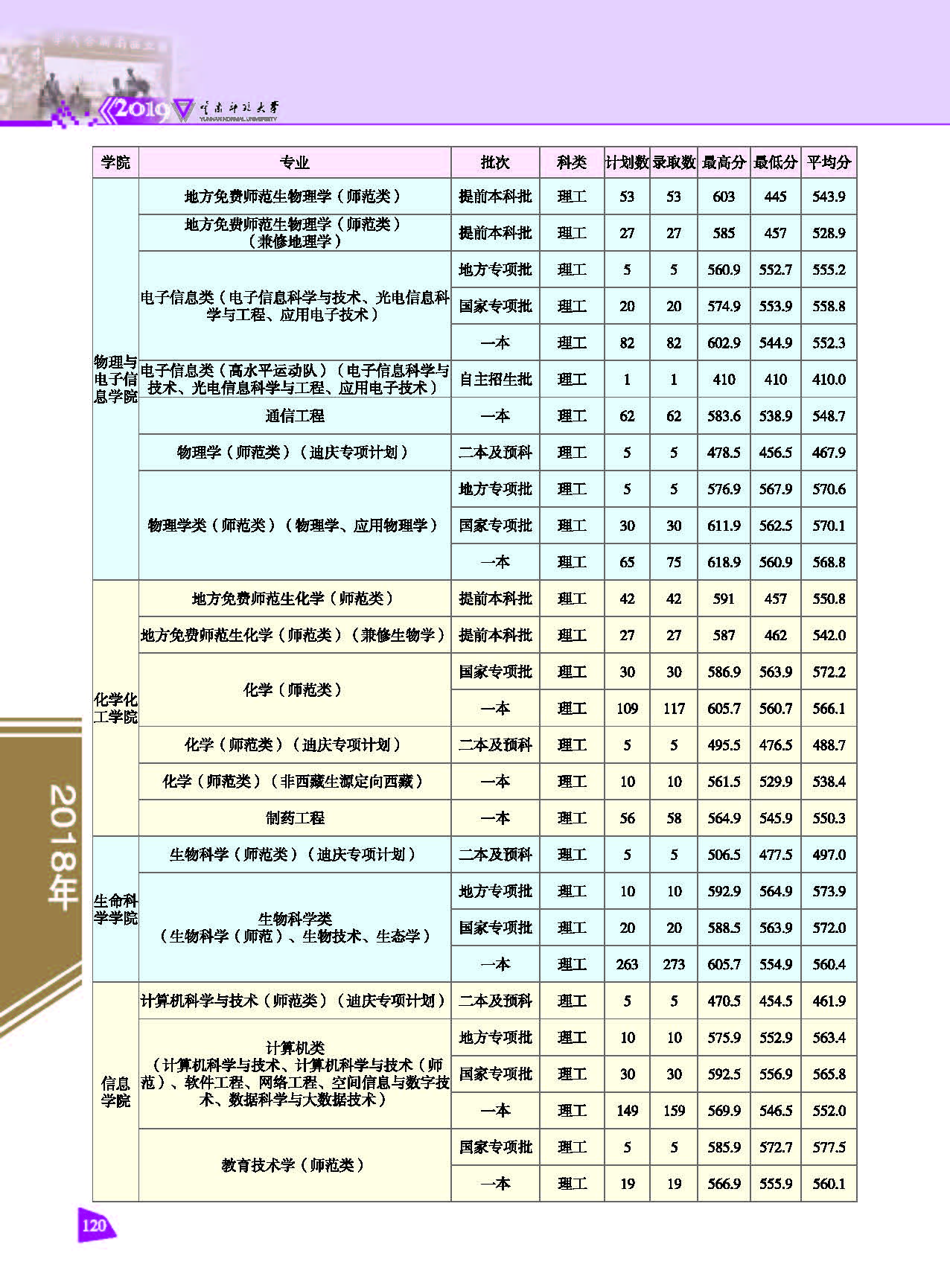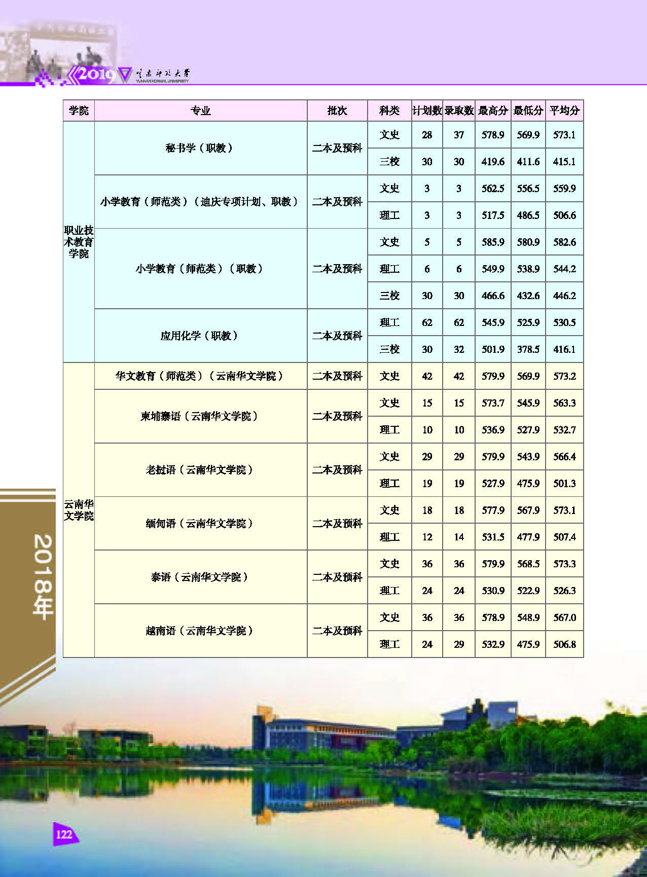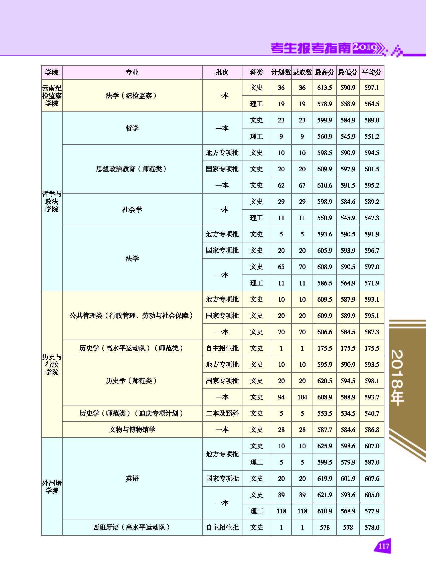 2018年云南師范大學(xué)招生錄取情況一覽表(云南省)