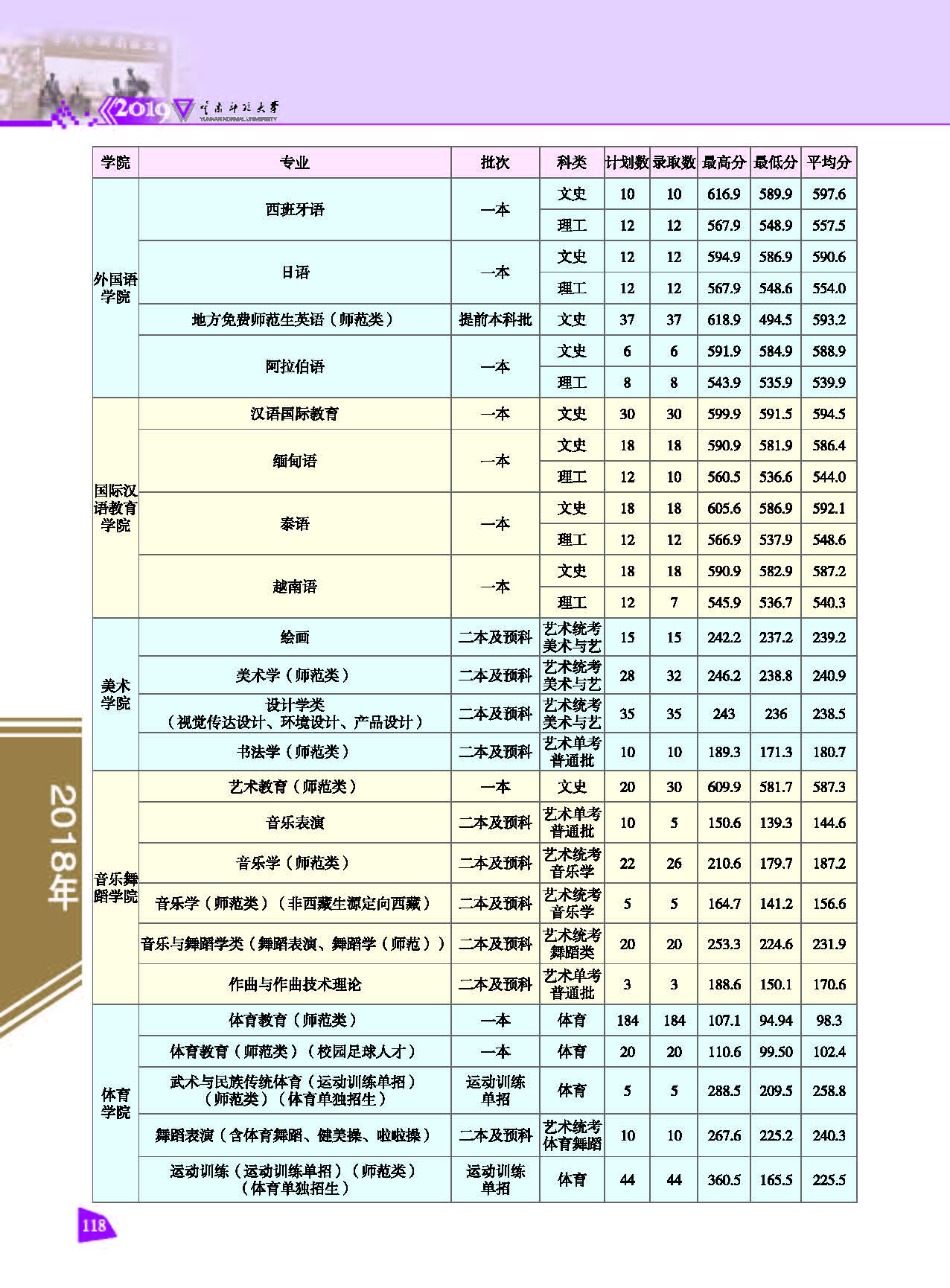 2018年云南師范大學(xué)招生錄取情況一覽表(省外.文史理工)