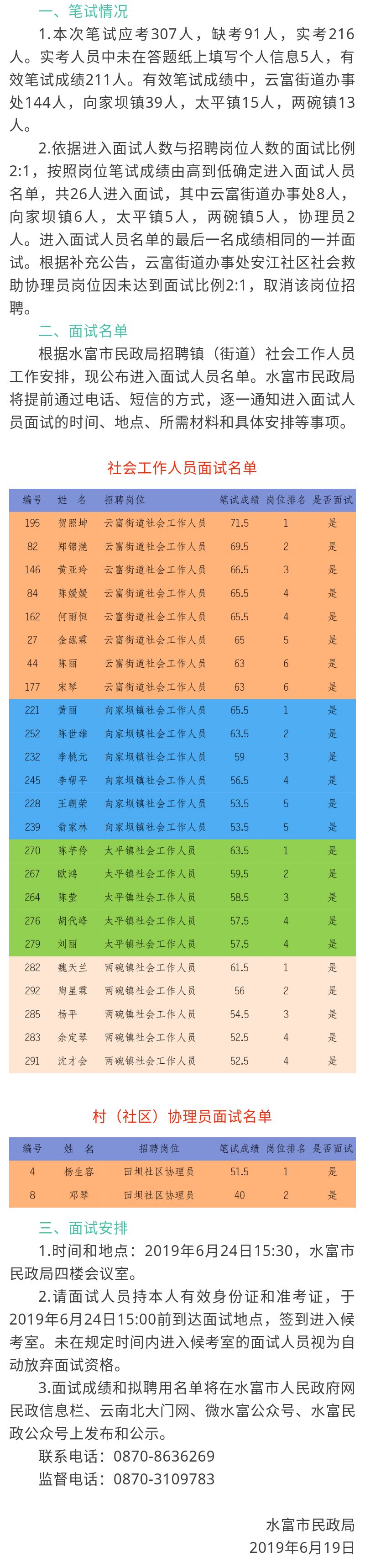 水富市民政局招聘鎮(zhèn)(街道)社會(huì)工作人員 筆試成績(jī)和面試公告