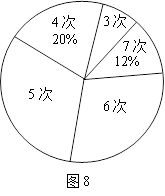 19.(10分)為了解某校九年級(jí)男生的體能情況,體育老師隨機(jī)抽取部分男生進(jìn)行引體向上測(cè)試,并對(duì)成績(jī)進(jìn)行了統(tǒng)計(jì),繪制成圖8和圖9兩幅尚不完整的統(tǒng)計(jì)圖.
