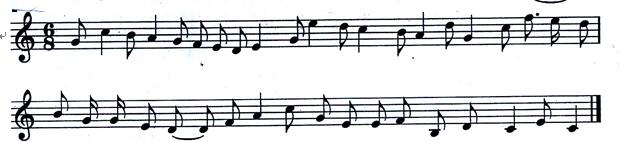 37.將以下曲調(diào)移高小二度、并重新記譜(要求寫出新調(diào)調(diào)號)。