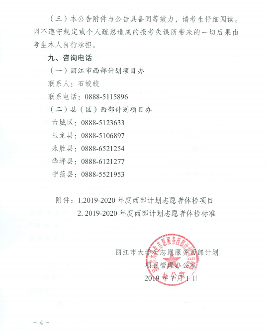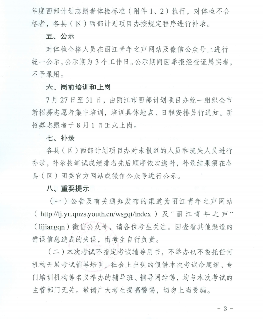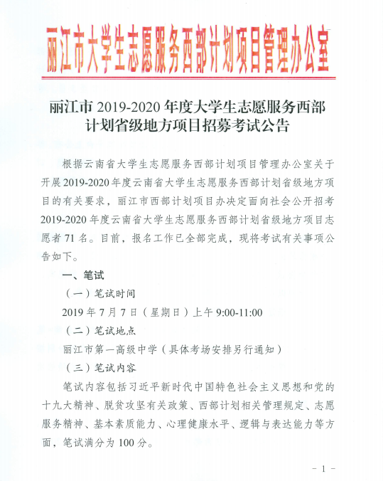 麗江市2019—2020年大學生西部志愿者招募考試公告