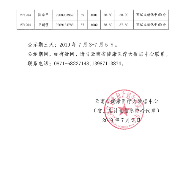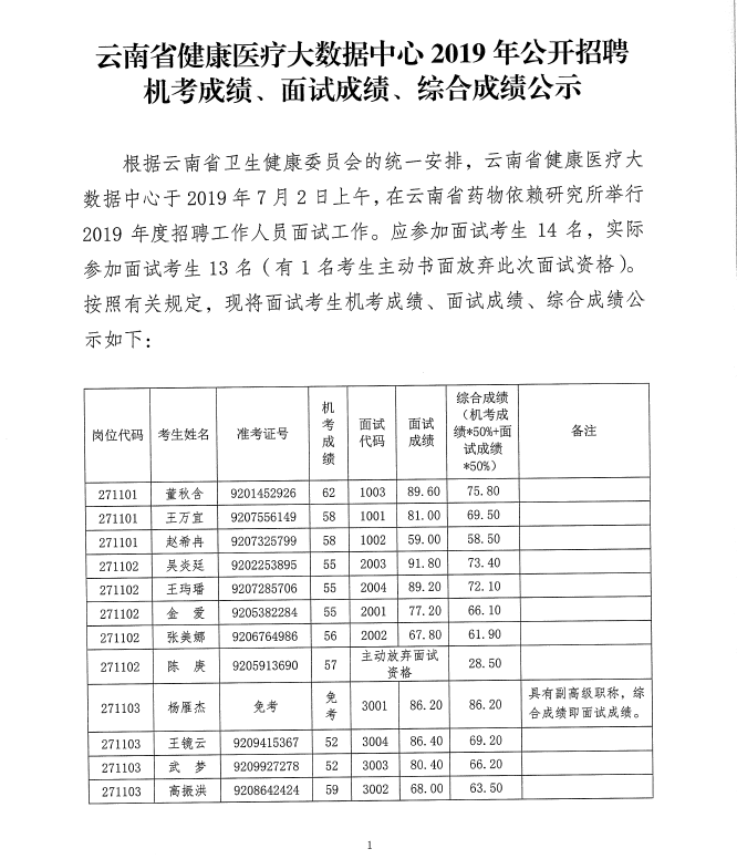 附件下載:云南省健康醫(yī)療大數(shù)據(jù)中心2019年公開(kāi)招聘機(jī)考成績(jī)、面試成績(jī)、綜合成績(jī)公示.pdf