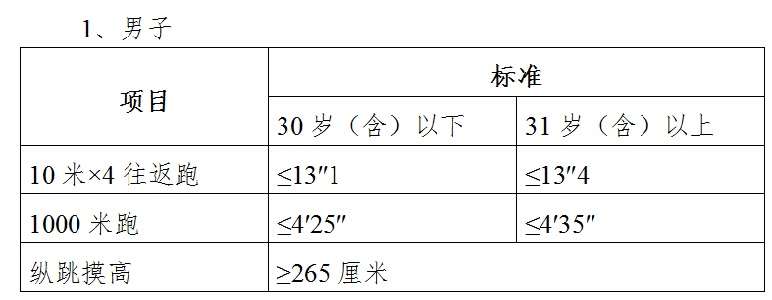 體能測評按照公安部《關(guān)于印發(fā)公安機關(guān)錄用人民警察體能測評項目和標準(暫行)的通知》及其所附標準開展。