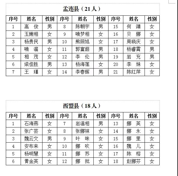 1.思茅區(qū)、墨江縣、景東縣、景谷縣、鎮(zhèn)沅縣、西盟縣按照1:2比例確定面試人員名單。