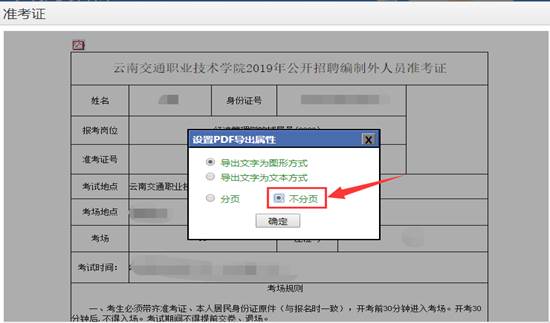 第四步:下載PDF準(zhǔn)考證,選擇“不分頁”選項(xiàng)