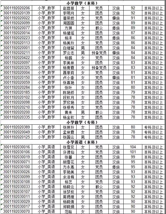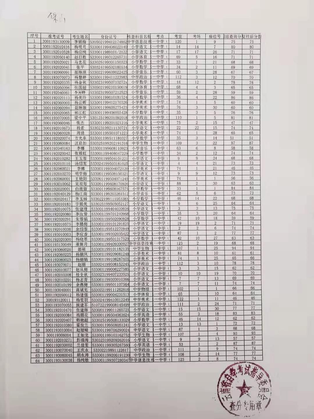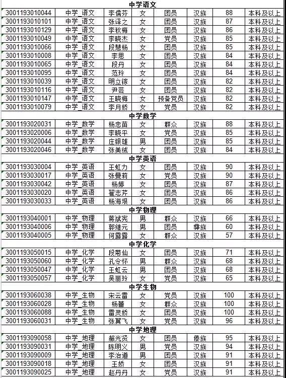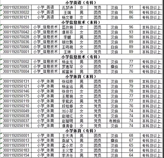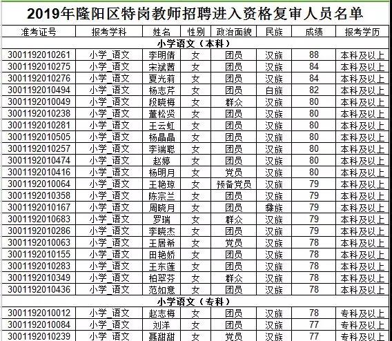 2.2019年隆陽區(qū)特崗教師招聘資格復審人員名