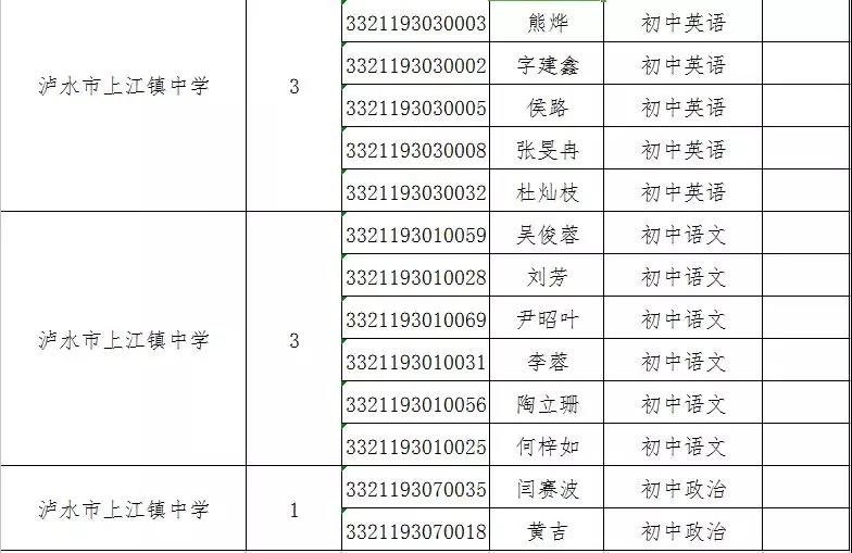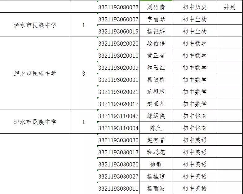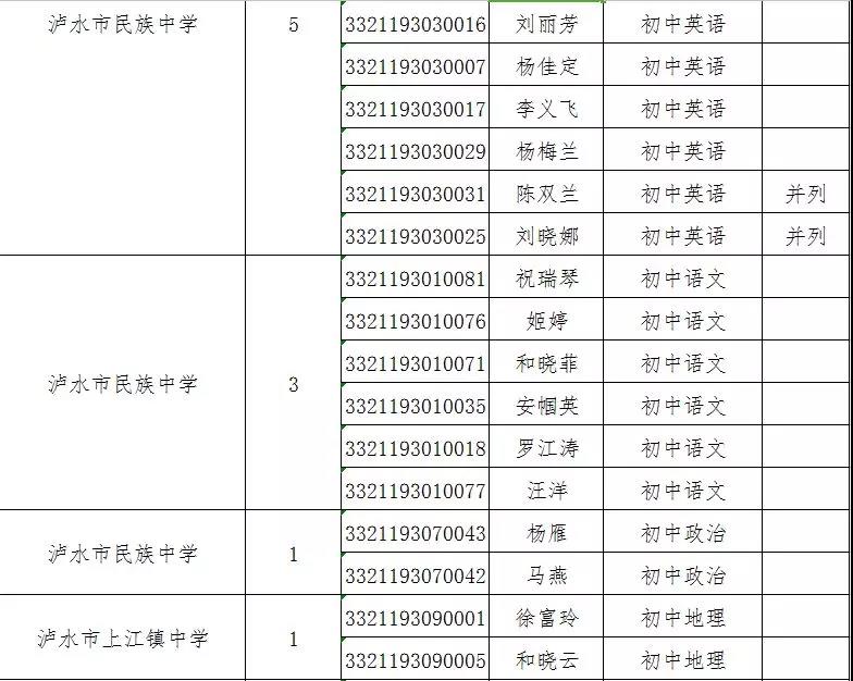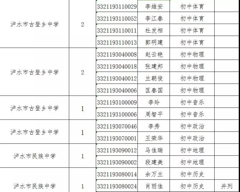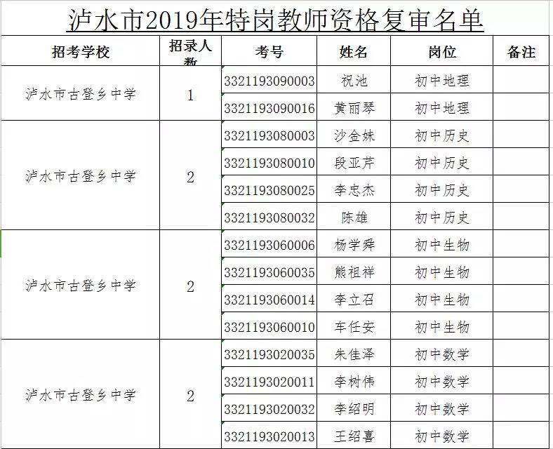 附件:瀘水市2019年特崗教師招聘考試面試資格復(fù)審人員名單