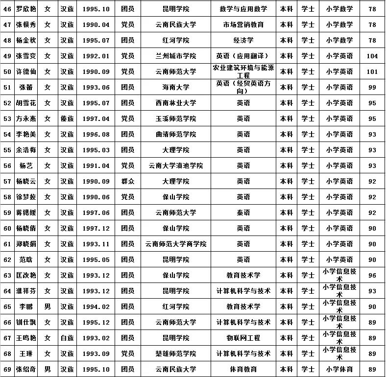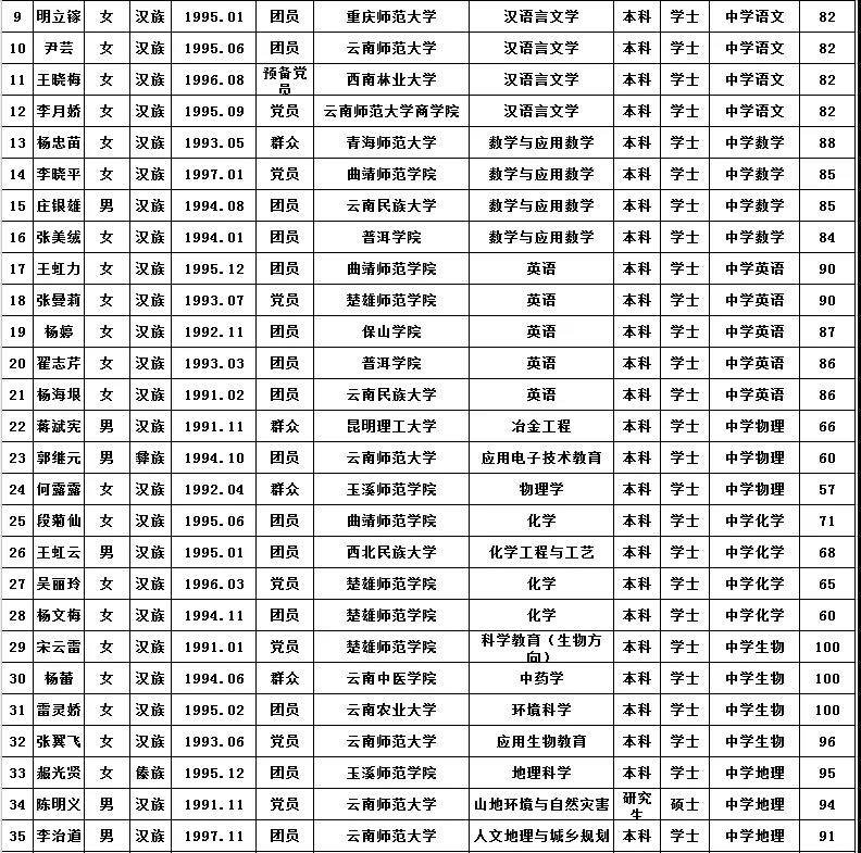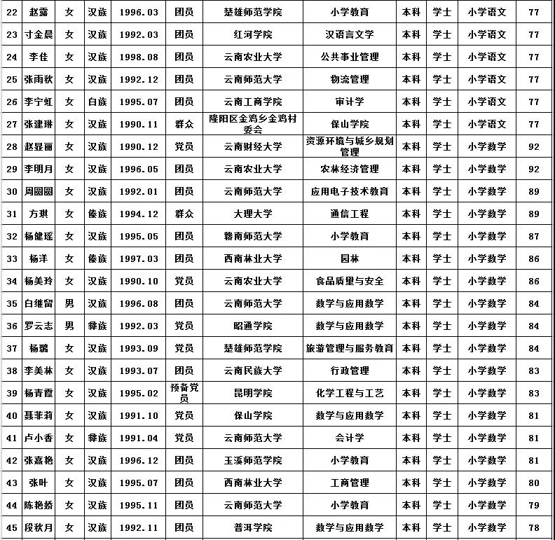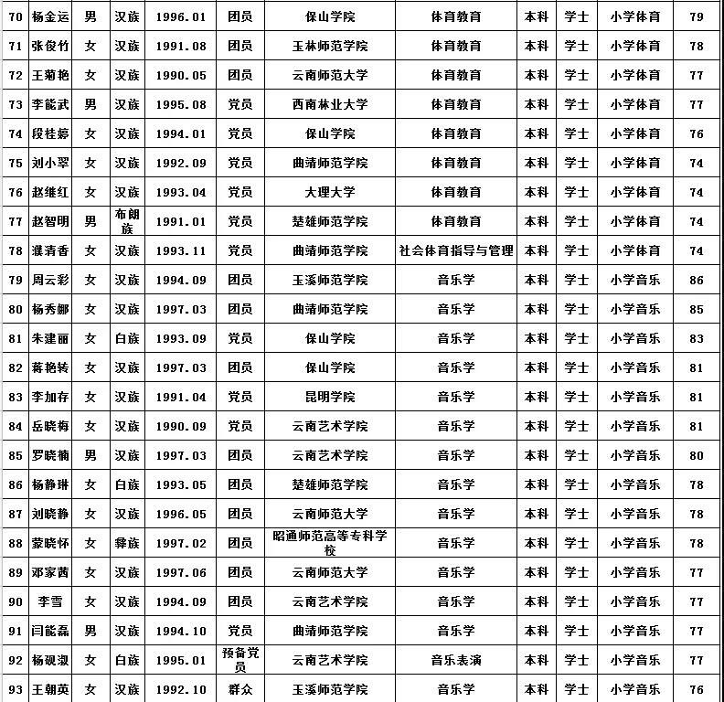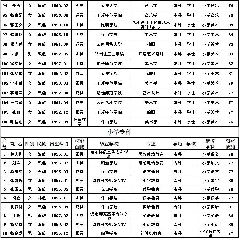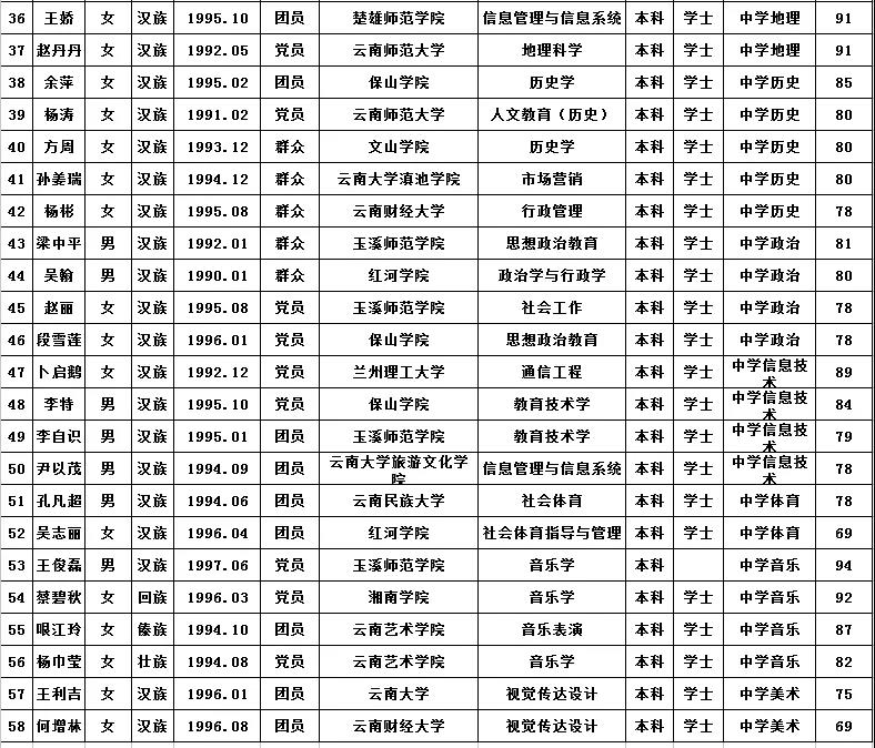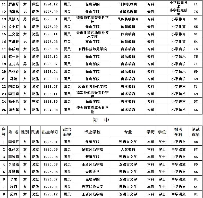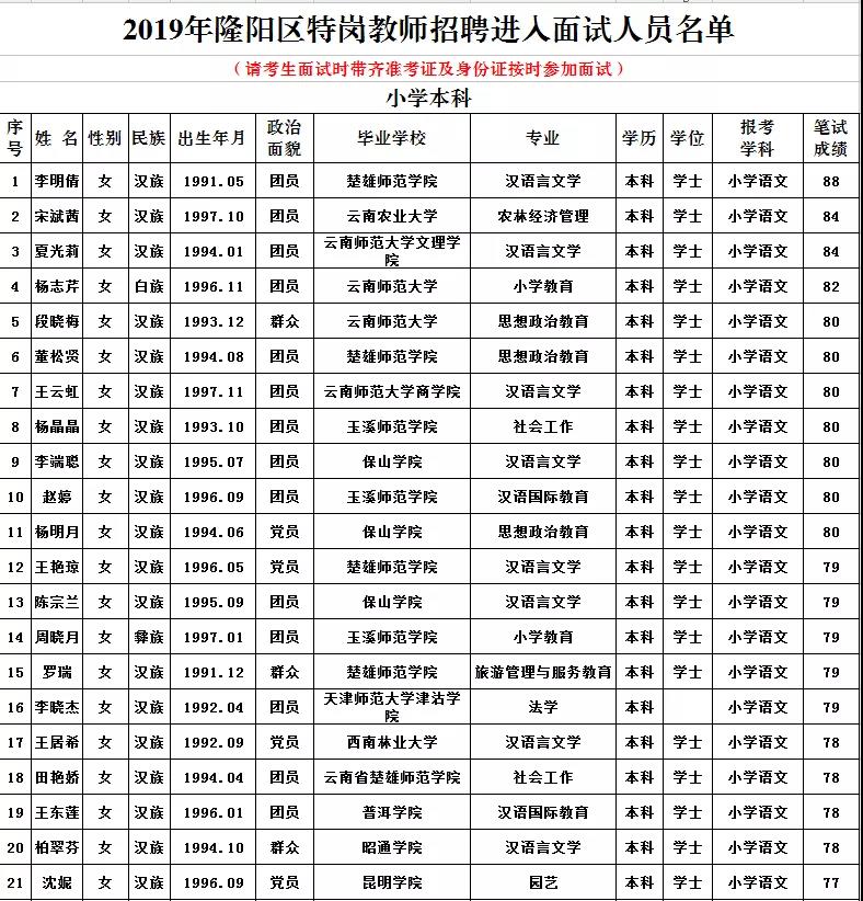 附:《2019年隆陽區(qū)特崗教師招聘進(jìn)入面試人員名單》