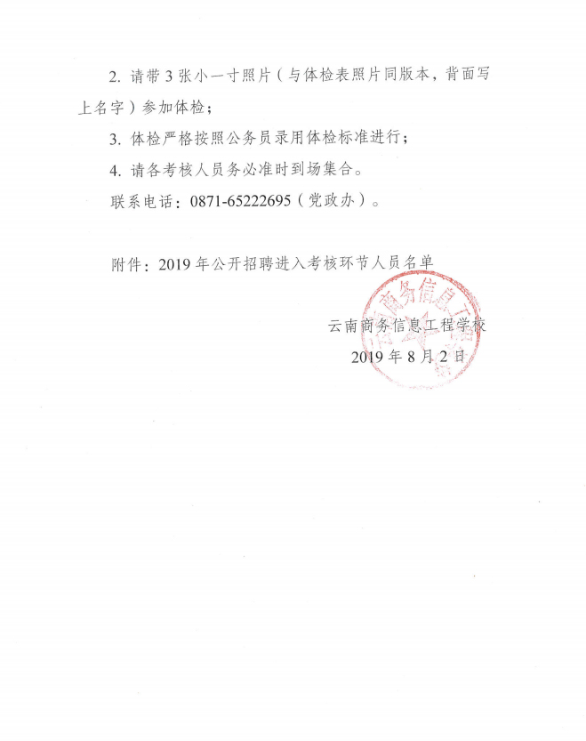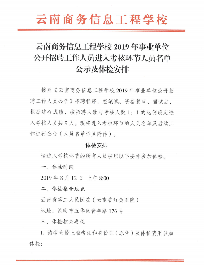 招聘工作人員進(jìn)入考核環(huán)節(jié)人員名單公示及體檢安排
