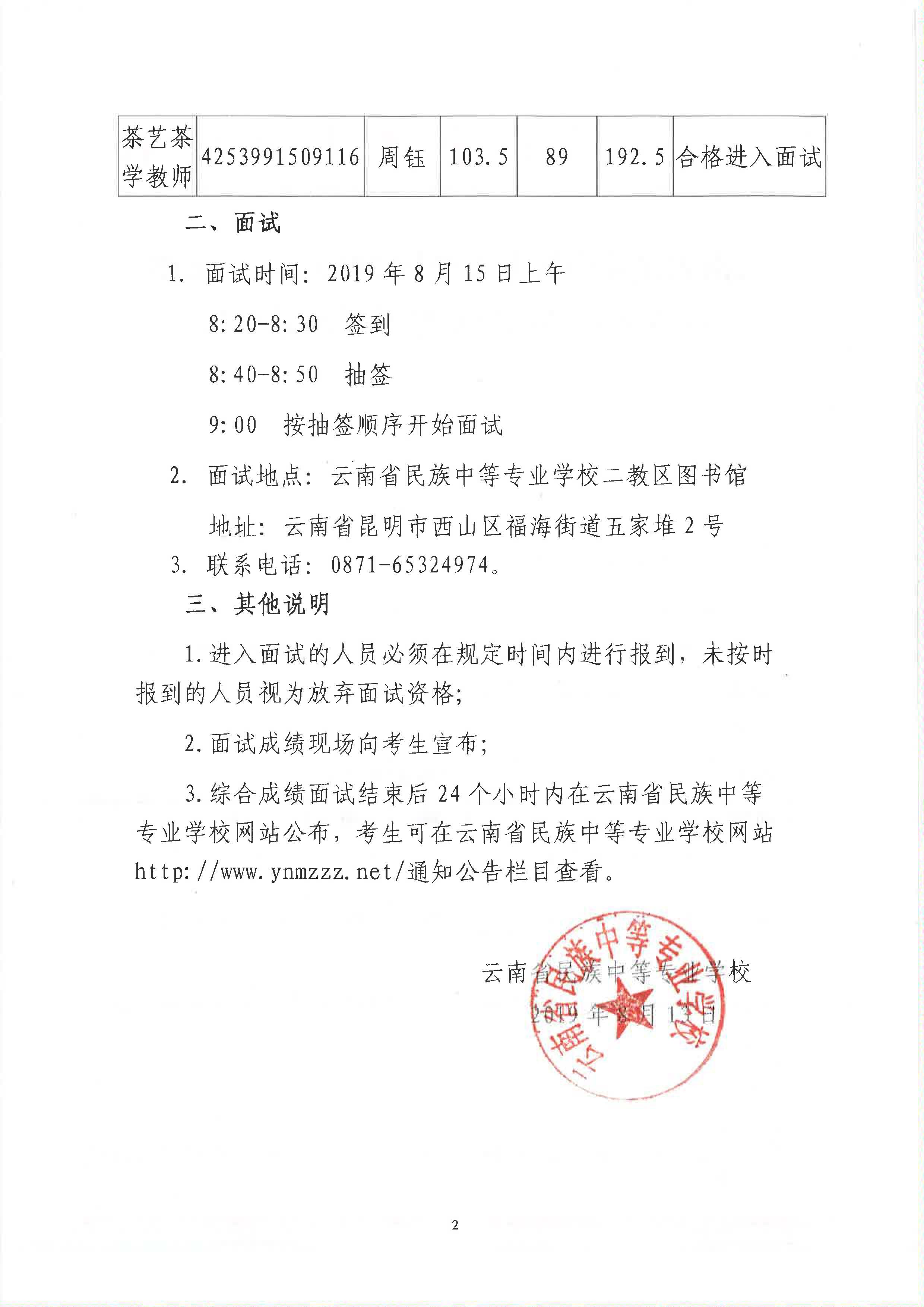 云南省民族中等專業(yè)學校2019年招聘資格復審結(jié)果及面試公告