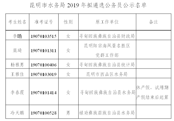 昆明市水務(wù)局2019年擬遴選公務(wù)員人選公示