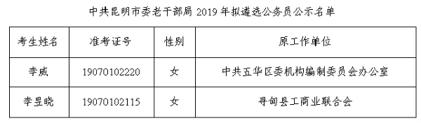 中共昆明市委老干部局2019年擬遴選公務(wù)員人選公示
